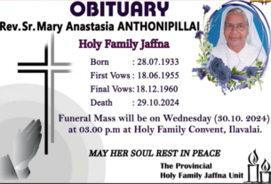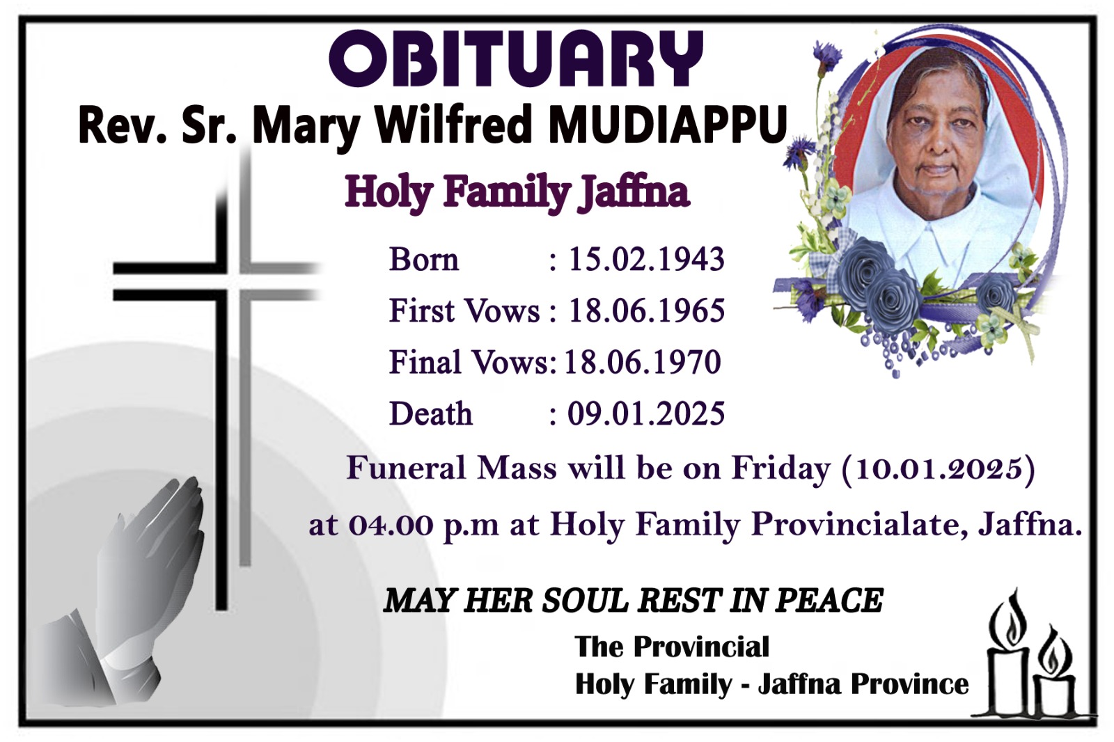 ஆழ்ந்த இரங்கல் அருட்சகோகரி மேரி வில்வ்ரட் முடியப்பு