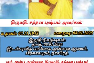ஆழ்ந்த இரங்கல் திருமதி . சந்தன புஷ்பம்