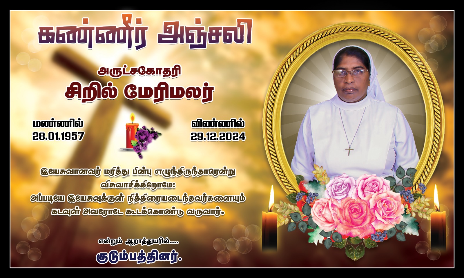ஆழ்ந்த இரங்கல் அருட்சகோதரி மேரி மலர்