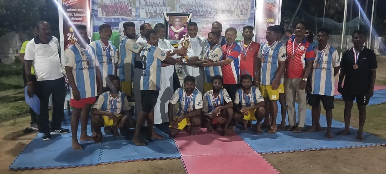 எம் பாசத்திற்குரிய மறைந்த ஆயர் தந்தை இராயப்பு யோசேப்பு ஆண்டகையின் ஞாபகார்த்தமாக கடந்த 25.08.2024 ஞாயிற்றுக்கிழமையன்று மன்னார் பொது விளையாட்டு மைதானத்தில் வடமாகாண ரீதியான உதைபந்தாட்ட போட்டி நடாத்தப்பட்டது. 40 வயதிற்கு மேற்பட்டோருக்கான இவ் உதைபந்தாட்ட போட்டியில் தொடர்ச்சியாக மூன்றாவது தடவையாகவும் மன்னார் மாவட்ட அணி கிண்ணத்தை கைப்பற்றியுள்ளது. தொடர் வெற்றி கிண்ணத்தை பெற்ற மன்னார் மாவட்ட அணியை மன்னா சமூகம் சார்பாக பாராட்டி வாழ்த்தி நிற்கின்றோம்.